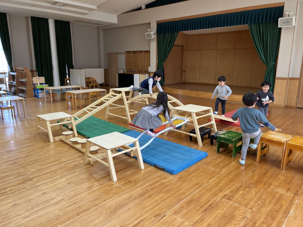 27年間、みんなが遊んだホールのアスレチック遊具が新しく生まれ変わりました。その名も「シンキング・ぼうけんコース」