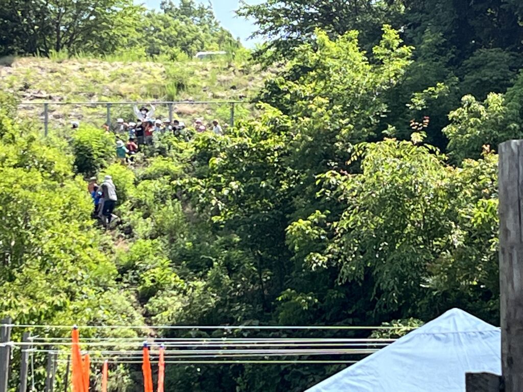 農園の上の探検コースに挑む年中組の子どもたち