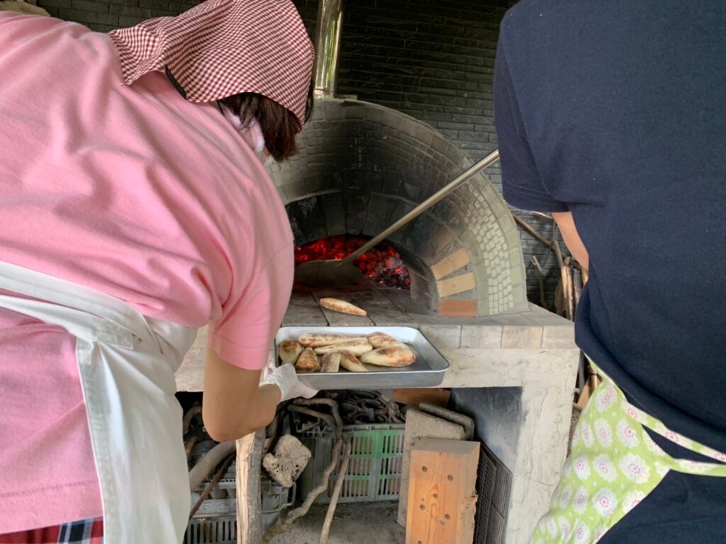 みんなで作ったナンは、釜で焼き