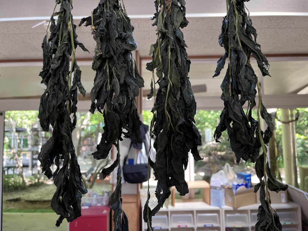 デイキャンプの時に刈り取ったアイタデは、葉っぱをとって乾燥させたり、束にしてお部屋の入り口に干したりしています。秋の染め物活動が楽しみですね。