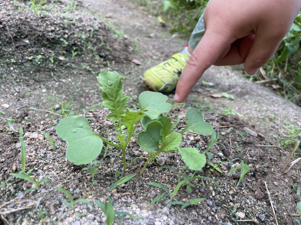 少し前にみんなで種を蒔いた大根の芽が出ていました!
