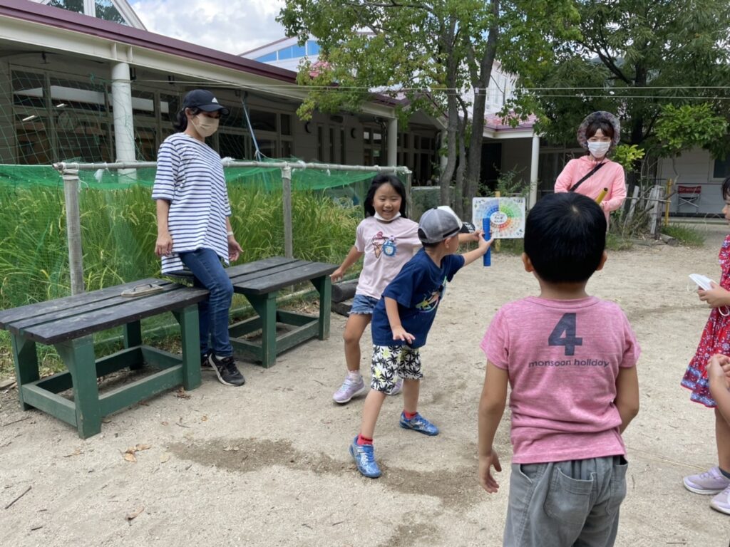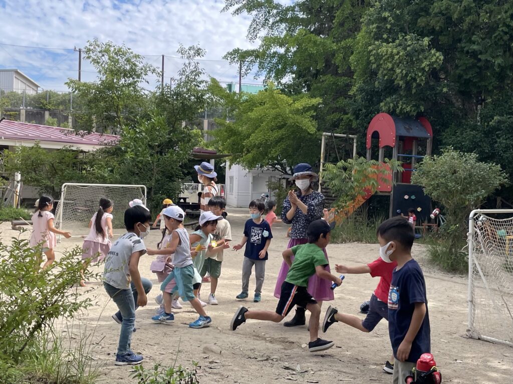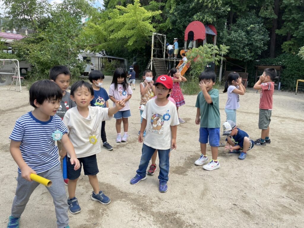 9月も中旬になりましたが、まだまだ暑い日が続いていますね。子どもたちは暑さに負けることなく、鬼ごっこや野球など、体を存分に動かして楽しんでいます。たっぷり汗をかいた後は水分補給も忘れていませんよ。