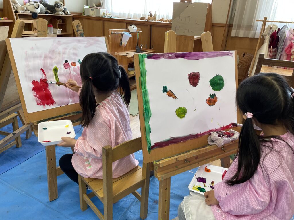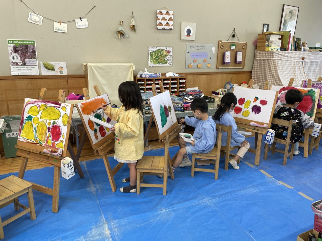 色を混ぜて自分だけの色をつくったり、重なる色を楽しんだりと、一人ひとりが描くことに夢中になっていました。