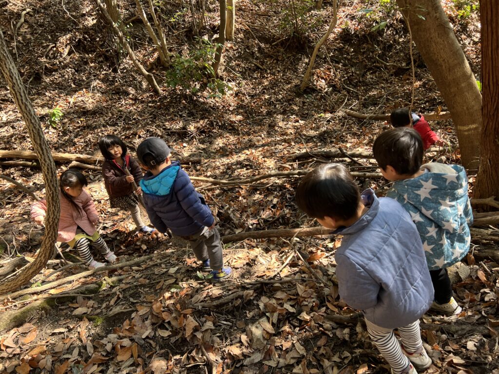 今日も森の中で豊かな遊びが広がりました。子どもたちの遊びをほんの一部ですが紹介しますね。