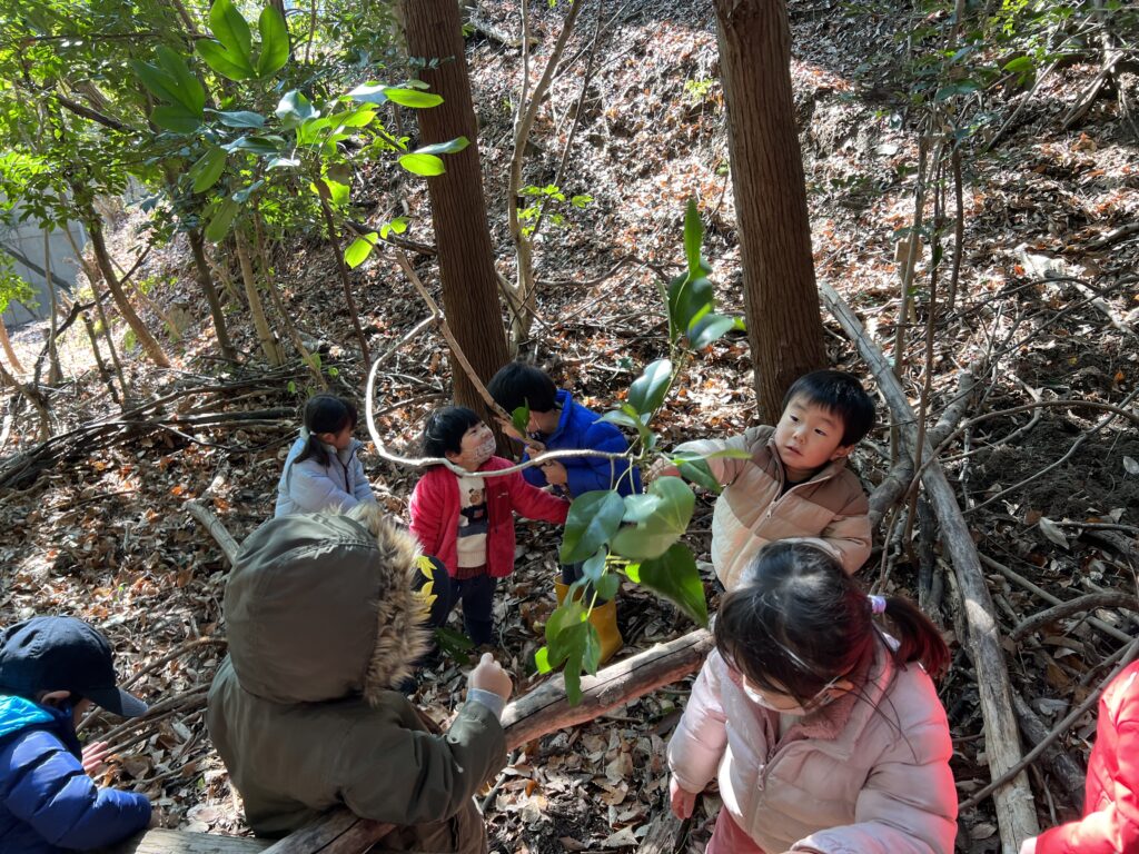 想像膨らむ、森遊びの世界 | 学校法人広島女学院 広島女学院ゲーンス幼稚園
