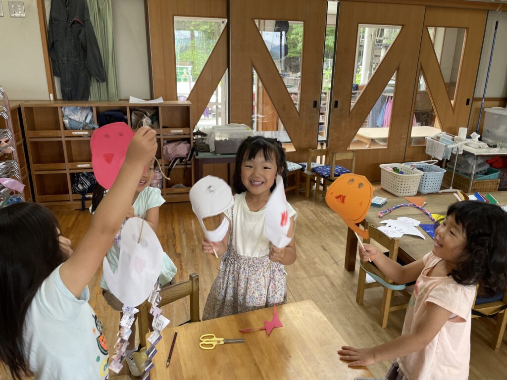 「ねぇねぇ、こんどはこわいはなしつくってみようよ!」と、まだまだ創作意欲の止まらない子どもたちです。