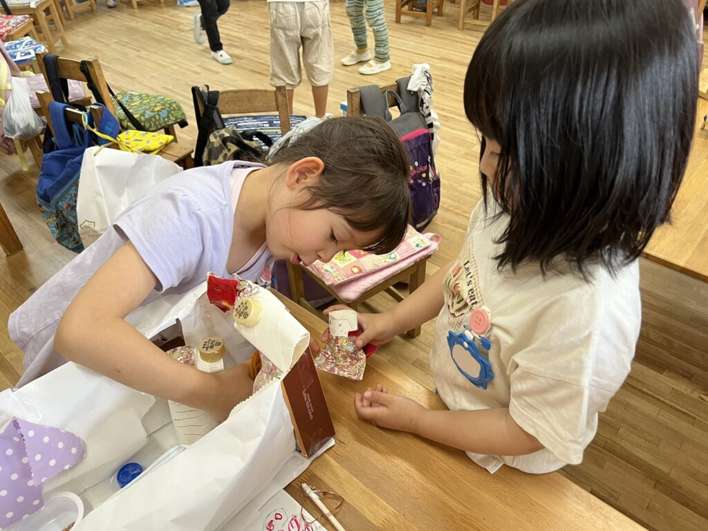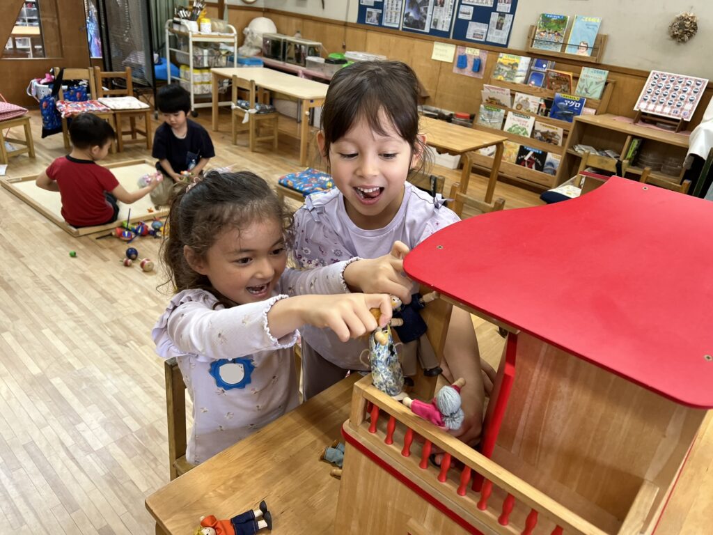 自分たちだけの手作りドールハウスに「優しく、大切に遊ばないとね」と子どもたち。次はどんなものを作って遊ぶのかな。