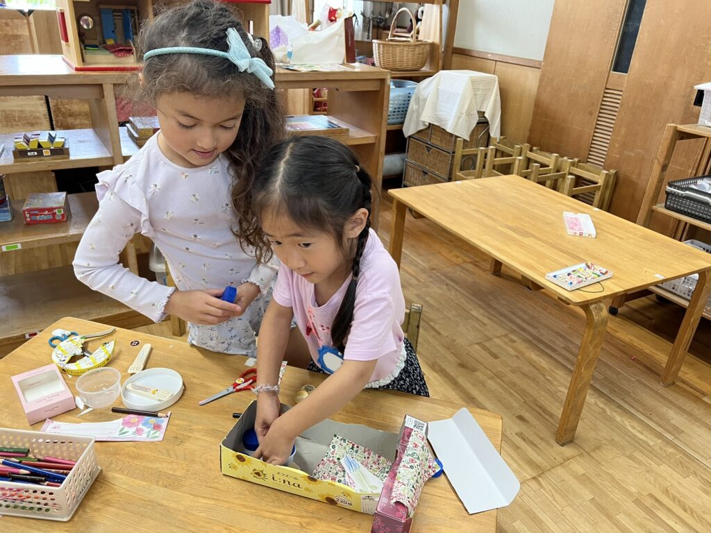 ドールハウスが特にお気に入りの数人の子どもたちから、ドールハウスで遊ぶ楽しさを積み重ねていく中で「自分たちでも作って遊びたい!」という思いが湧き出てきました。