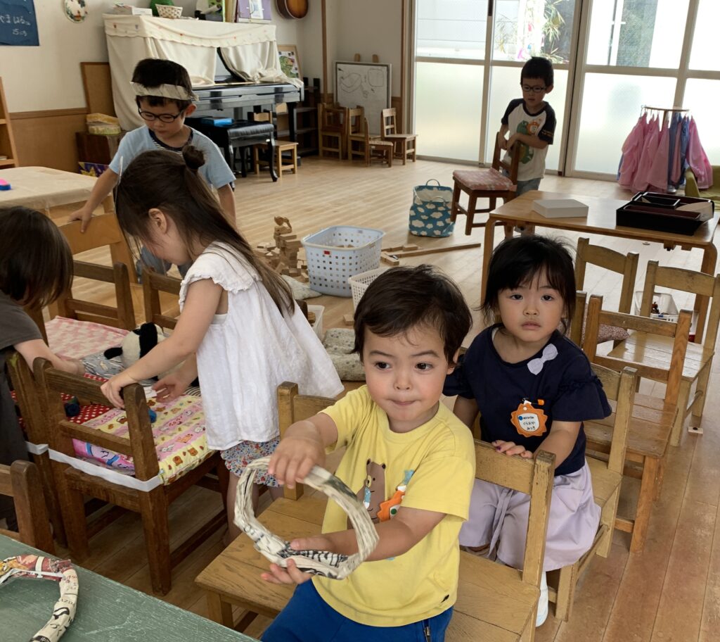 近くでバスごっこをしていた子たちが、「救急車する!」と、救急隊も出動です。