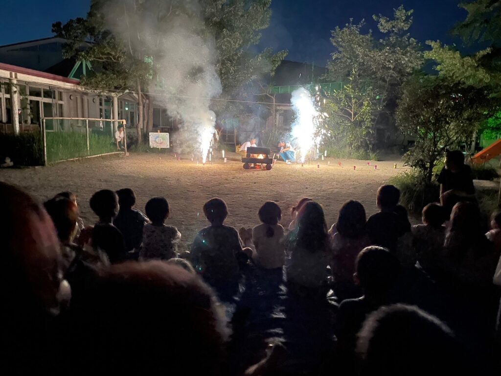 7月21〜22日にかけて、年長組は幼稚園でお泊まり会を行いました。今年度のテーマは『つくりだす』新しく遊びや友だち関係をつくりだし、充実した2日間となりました。