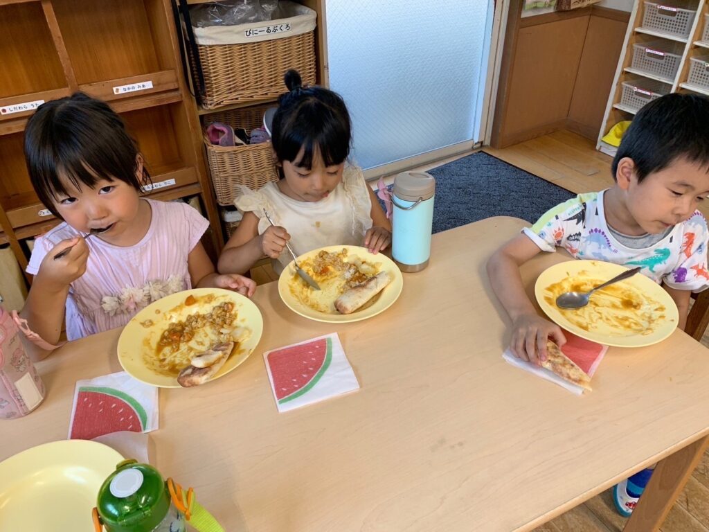 夕食はゲーンスカレー!自分たちで作ったナンと合わせて食べると格別に美味しかったね