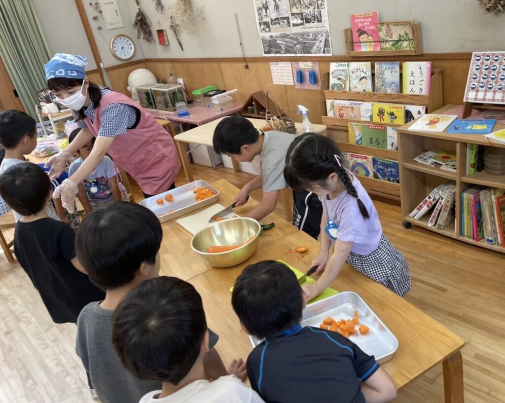 【チームほし組】夕食のカレーつくりのお手伝い。野菜切りは任せてね!
