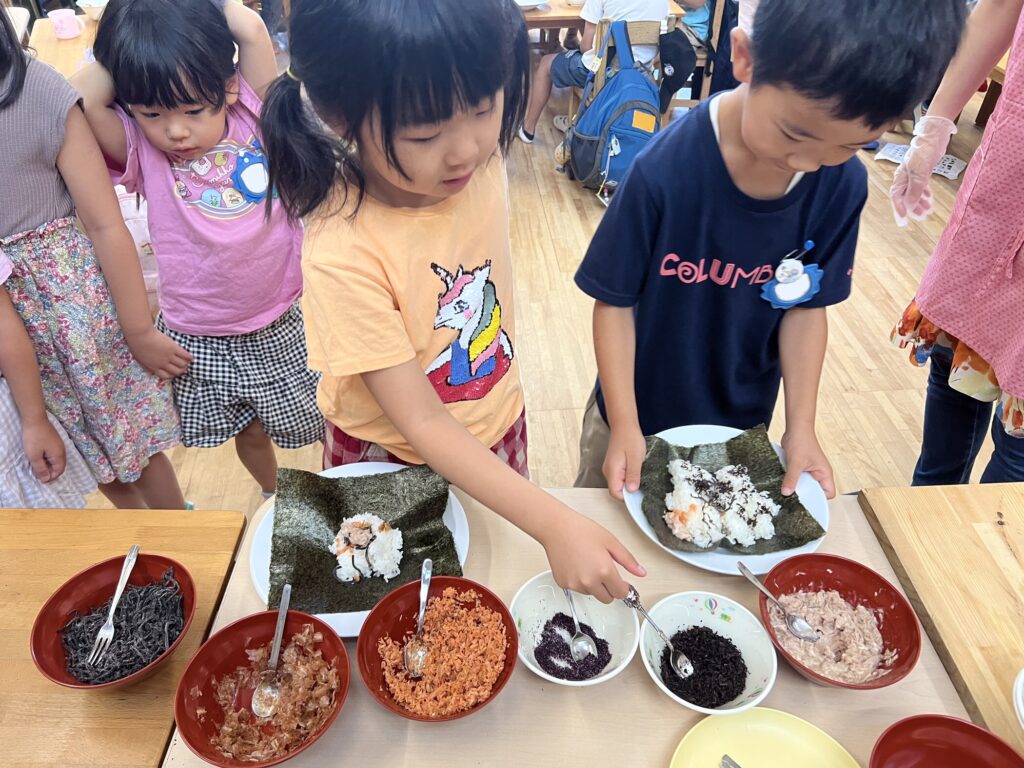朝ごはんはおにぎりパーティー!好きな具を選んで1つの大きなおにぎりを作って食べました