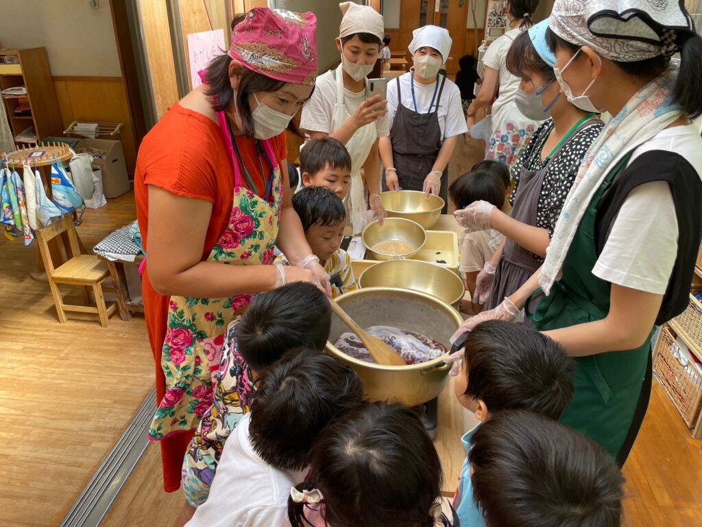 ゲーンス農園サポーターズの皆さんが大きなお鍋でぐつぐつ煮て下さいました。