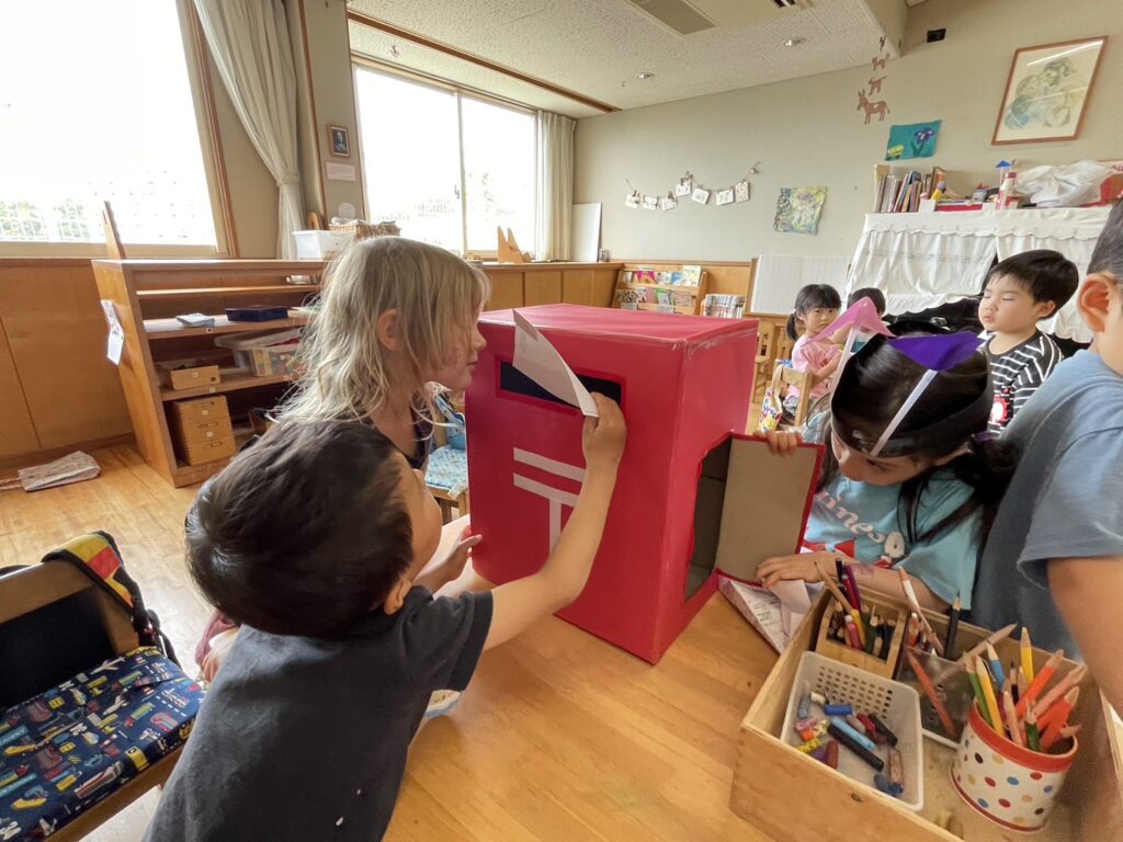保育室ではその後、郵便屋さんごっこが盛り上がりましたよ。