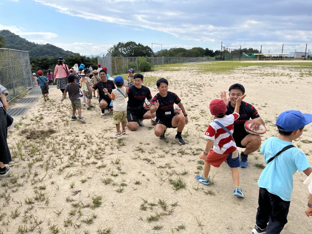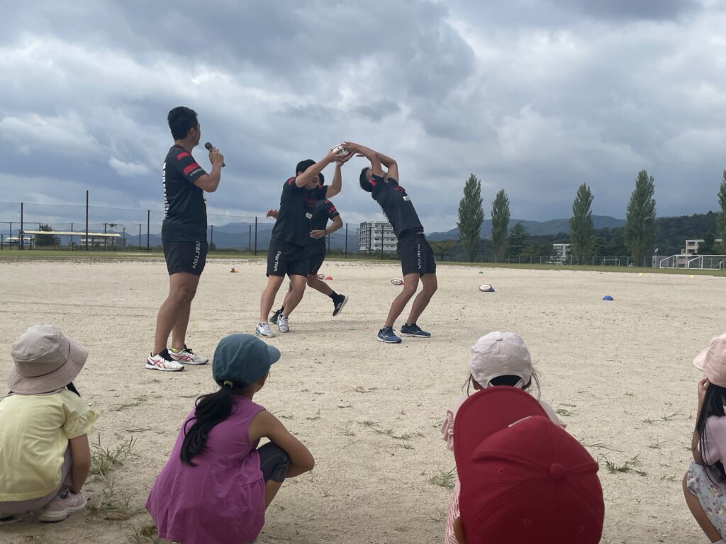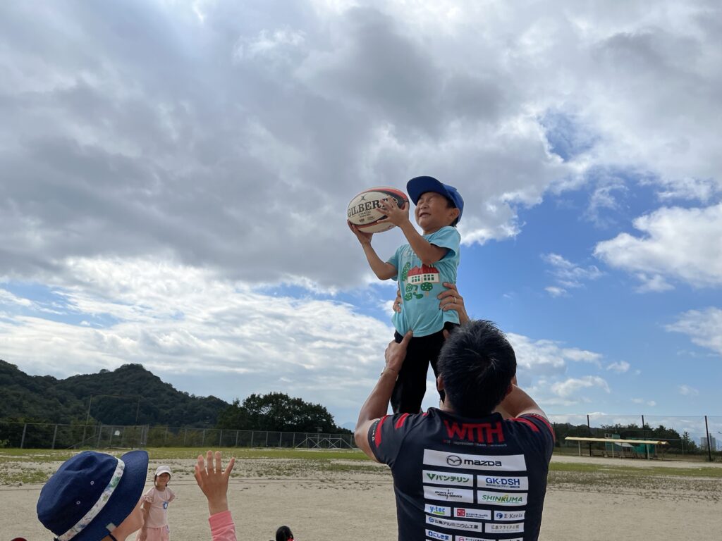 そして、ラインアウトジャンプもさせていただきました!あまりの高さに怖くないのかなと思いましたが「楽しい!もう一回やりたい!」とこの日1番の笑顔を見せてくれた子どもたち。
