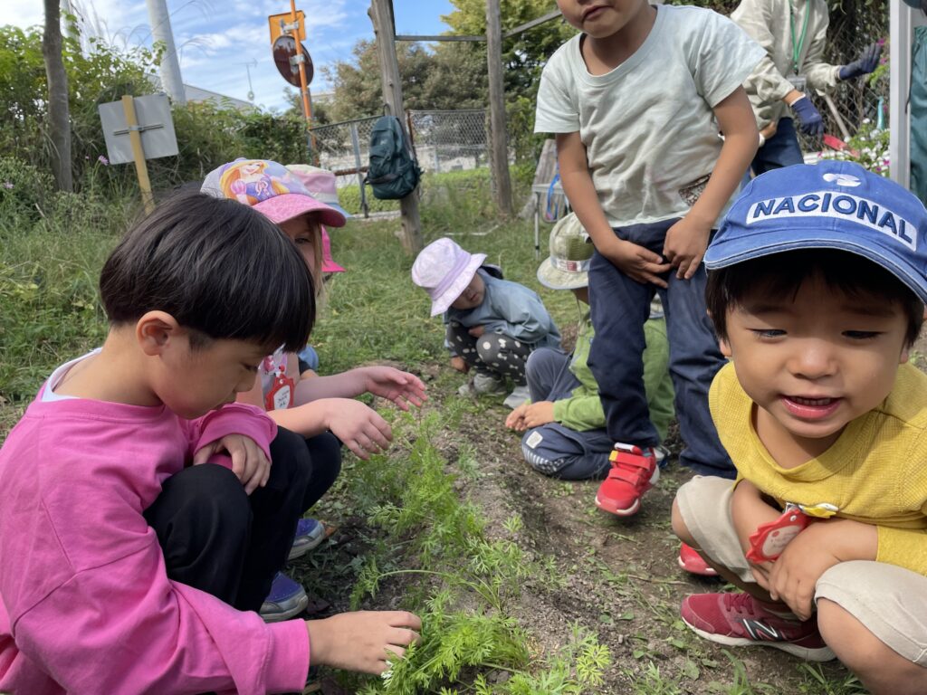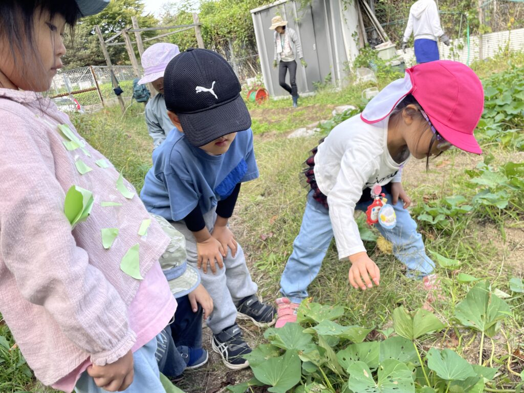 さあ、芋掘りの日まであと少し!土の中の野菜たちはどうなっているのかな?期待膨らむ子どもたちです。