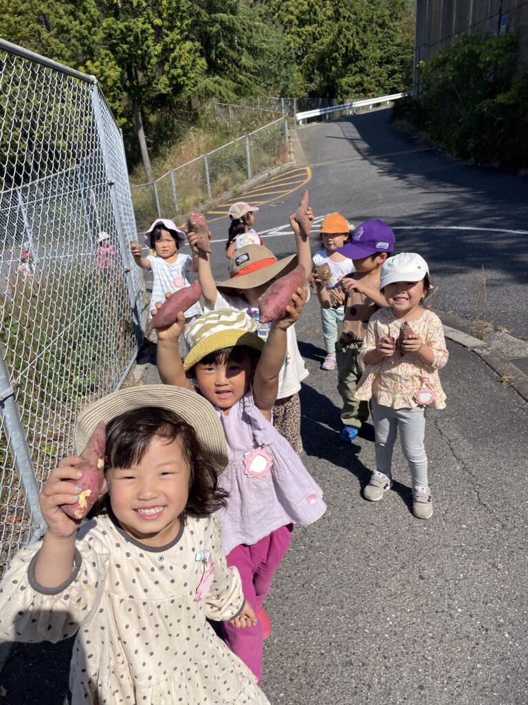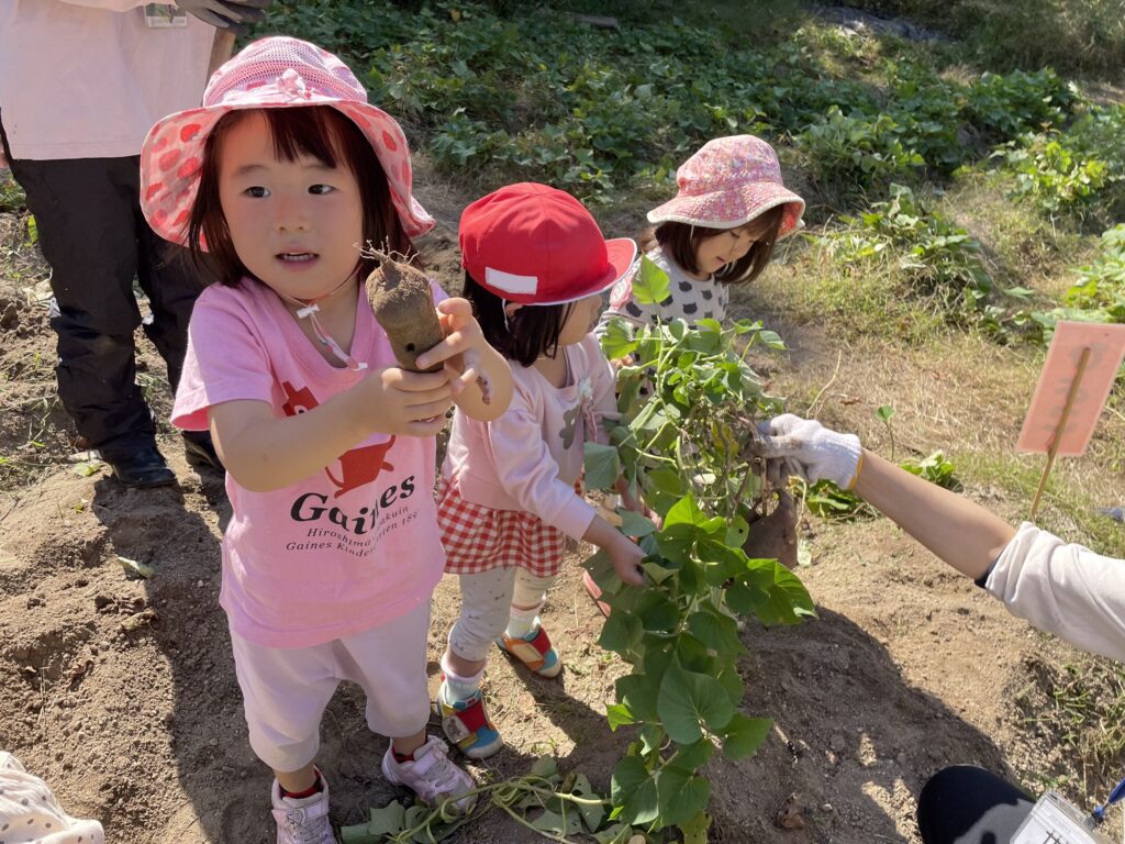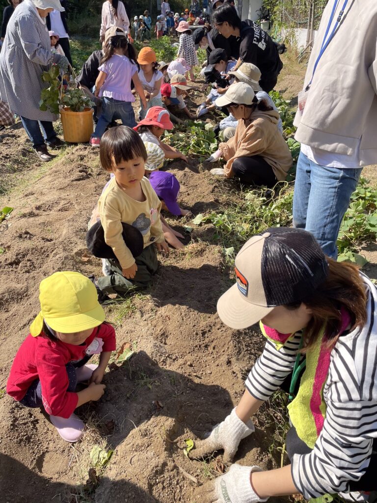 幼稚園で初めて芋ほりを体験した年少組の子どもたちの姿をご紹介。