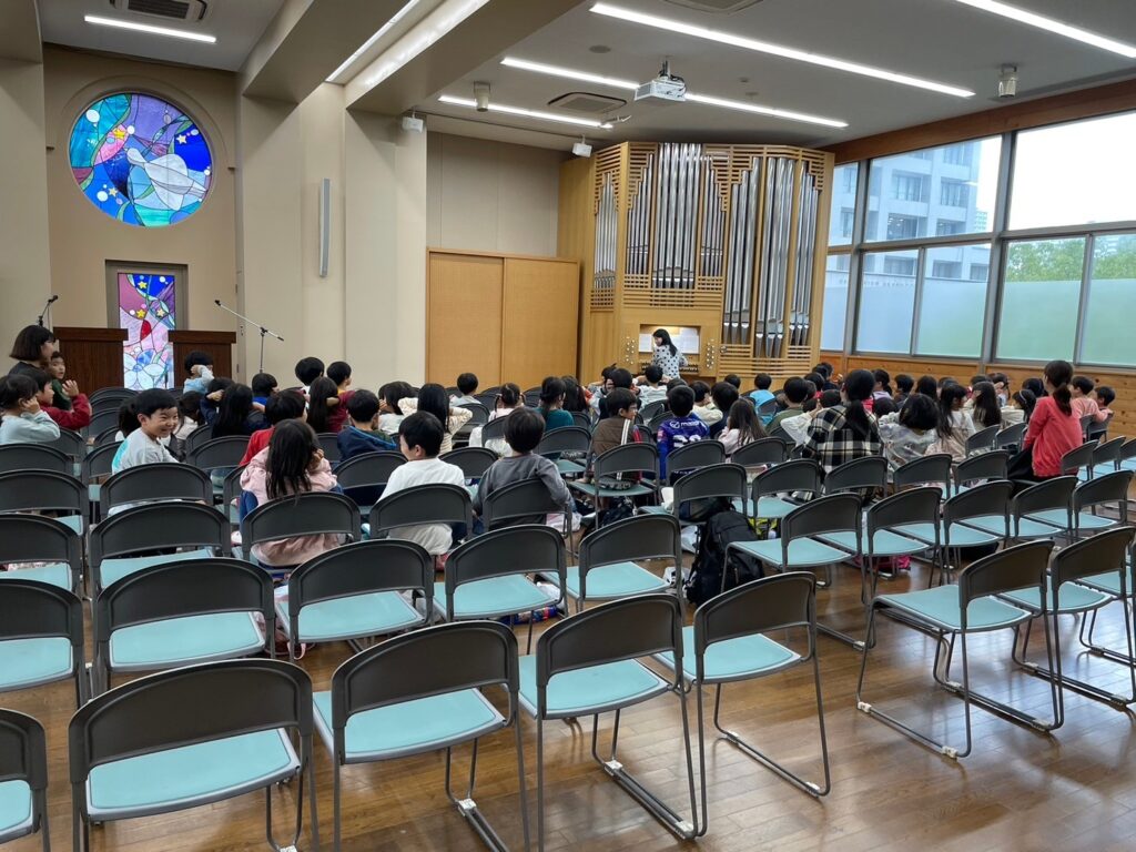 高校チャペルでパイプオルガンの演奏に耳を傾け、オルガンの奏楽に合わせて賛美の時を持つことができました。