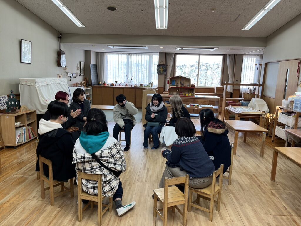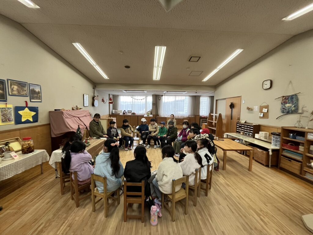 小学校1年生から、中学生、高校生、大学生、社会人としてそれぞれの場で自分らしく歩んでいる様子を報告し合って、幼稚園の時に夢中になっていた遊びや、久しぶりに再会した仲間や先生たちと時を忘れて楽しい時間を過ごしました。