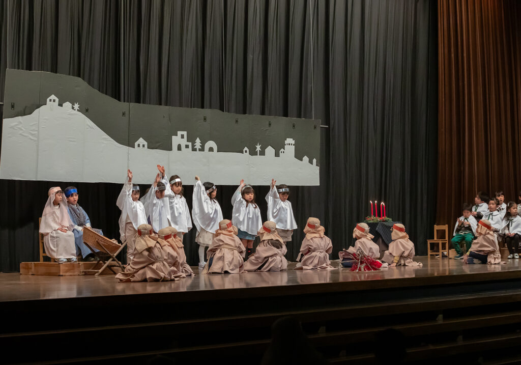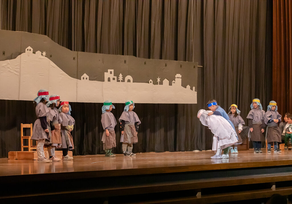 全園児が一堂に会し、保護者の皆さんを始めご家族の方も共に集い、年長児のページェント、年中少児の聖歌隊讃美を通して礼拝を捧げました。