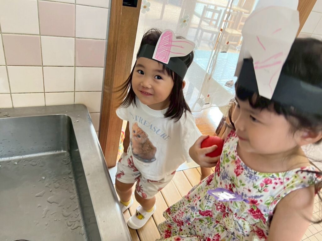 「しゃくしゃくしてるね」「噛んだらぽりぽりって言ったの!」