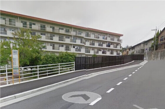 もう一つのバス停、終点『早稲田団地』 からのルートもご案内します。 こちら↑が終点『早稲田団地』です。 進行方向三叉路を右折し、少し坂を進んでください。