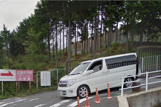 牛田南、桜橋交差点から牛田早稲田方面に北上してください。 スーパーマーケット『ショージ』 、『セブンイレブン』を過ぎて さらに曲がりくねった坂道を登っていくと、広島女学院大学 正門前の交差点に着きます。
