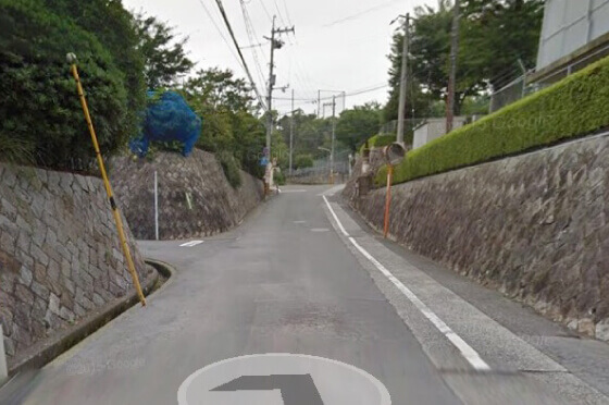 この坂道は『想い坂』です。 この先↑に『早稲田中学校』があります。 右方向→に『広島女学院牛田キャンパス』があります。 もうすぐです。