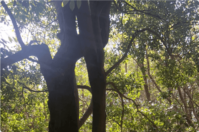 ぼうけんのもり 北の奥に、枝がくねくねと 不思議にまがったクロキが生えているよ!