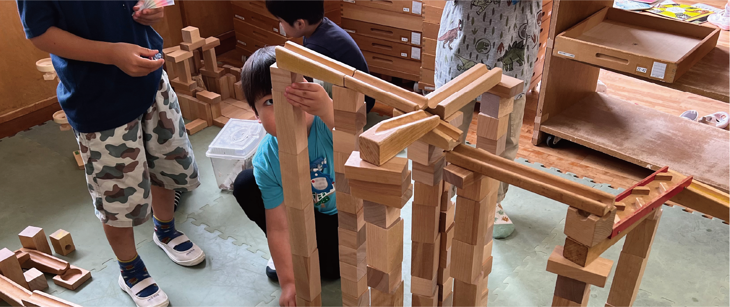 保育室は、生活と遊びの拠点 自分の荷物を置き、自分の椅子があり、集まったりお弁当を食べたり、そして子どもの興味関心に寄り添いながら環境を構成する、遊びの空間でもあります。